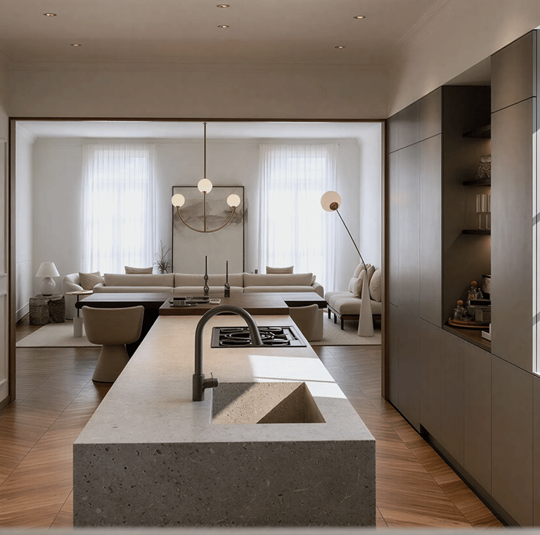 Olivé & Partners instala un showroom de proyecto con muestras e imágenes en la propia vivienda que adquieres lo que permite gestionar el proceso de personalización y toma de decisiones de la forma más cómoda para ti. El estudio de interiorismo viene a tu casa y no al revés. Así debería ser siempre.