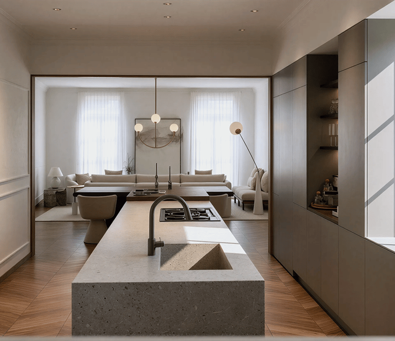 Olivé & Partners instala un showroom de proyecto con muestras e imágenes en la propia vivienda que adquieres lo que permite gestionar el proceso de personalización y toma de decisiones de la forma más cómoda para ti. El estudio de interiorismo viene a tu casa y no al revés. Así debería ser siempre.